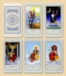 Карты Таро - система символов, колода из 78 карт, появившаяся в Средневековье в XIV-XVI веке, в наши дни используется преимущественно для гадания. Изображения на картах Таро имеют сложное истолкование с точки зрения астрологии, оккультизма и алхимии, поэтому традиционно Таро связывается с "тайным знанием" и считается загадочным. Двадцать два Старших Аркана - это двадцать два отдельных сюжета, из которых ни один не повторяет другого, а будучи разложены по номерам, они складываются в четкую логическую последовательность. Младшие Арканы состоят из четырех серий или мастей - Жезлов, Мечей, Кубков и Денариев, позже ставших трефами, пиками, червами и бубнами. Каждая масть, как и в игральных картах, начинается с Туза, за которым следуют Двойка, Тройка и так далее до Десятки. Есть еще фигурные карты или картинки - Король, Королева, Рыцарь и Паж - на одну больше, чем в игральных. Размер карт: 70 на 105 мм 78 карт Производитель: Россия