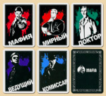 «Мафия» — салонная командная психологическая пошаговая ролевая игра с детективным сюжетом для компаний от трех человек. За все время существования игра пережила много изменений и дополнений. Но главная задача осталась неизменной - попытаться вычислить среди игроков «мафию», т.е. сплоченное меньшинство, которое, в свою очередь, пытается «победить» «мирных жителей». Кто мафия, а кто нет, определяют розданные карты. Интрига в том, что игроки не знают ролей друг друга. 22 карты с персонажами Время партии: около 1 часа Кол-во игроков: от 5-ти человек Сложность: средняя Возраст: 12+