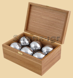 Набор для петанка на 6 шаров в дубовом кейсе. В наборе: - 6 металлических шаров; - дубовый кейс; - веревочка для измерения расстояний; - деревянный или пластиковый шарик (кошонет) Рулетка в комплект не входит! Размер дубового кейса 10 на 19 на 27 см Вес шара 715 гр, диаметр шара 67 мм кейс выполнен из массива дуба, сверху покрыт шпоном американского ореха, на котором методом маркетри нанесена надпись "петанк". Древесина дуба отличается выразительной структурой и красивой окраской. Цвет коричневый или желтовато-коричневый. Преимущества дуба — в долговечности, высокой прочности и стойкости к влаге. Вес набора 5 кг Производитель: шары - Китай, кейс - Россия