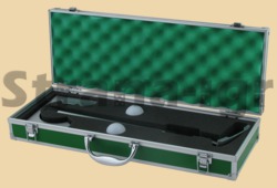 Размер кейса 18 на 50 см, высота 8 смМатериал кейса - алюминийВ комплекте луза, клюшка, 2 мячаПроизводитель Китай