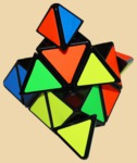 Известная механическая головоломка с 4-мя сторонами разного цвета. Предшественник кубика Рубика (появилась раньше!). Цель - собрать все элементы одного цвета на одной стороне. Пирамидка представляет собой геометрическое тело тетраэдр. Как и кубик Рубика, она состоит из элементов, которые при повороте граней могут перемешаться с грани на грань, только роль кубиков здесь выполняют маленькие тетраэдры, из которых и сложен большой тетраэдр. Пирамидка похожа на кубика Рубика, однако значительно проще и для сборки потребуются другие алгоритмы. Каждый поворот - это вращение элементов вокруг одной из 4х осей головоломки на 120 градусов.