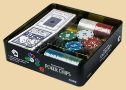 Фишки для игры в покер 100шт, по 4 грамма Диаметр фишек 39 мм Номинал фишек 1$ - 25шт, 5$ - 25шт, 10$ - 25шт, 25$ - 25шт. Две колоды карт с пластиковым покрытием, по 54 листа в колоде Производство Китай