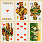 Игральные карты" Славянские" имеют изображение на рубашке " Витязь на распутье " в славянском стиле. Карты выполнены из высококачественных материалов, что гарантирует их долговечность и удобное использование. Материал изготовления: ламинированный плотный картон Индекс: стандартный, лица изображены в художественном стиле Количество карт: 36 листов Цвет рубашки: имеют изображение на рубашке " Витязь на распутье " в славянском стиле, красная рубашка Размер упаковки: 9,2 на 6 на 1,3 см Размер карт: длина 88,9 мм, ширина 57,15 мм ("бридж" размер) Вес: 65 гр. Производитель: Австрия (Piatnik)