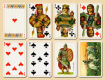 Игральные карты" Славянские" имеют изображение на рубашке " Витязь на распутье " в славянском стиле. Карты выполнены из высококачественных материалов, что гарантирует их долговечность и удобное использование. Материал изготовления: ламинированный плотный картон Индекс: стандартный, лица изображены в художественном стиле Количество карт: 55 листов Цвет рубашки: имеют изображение на рубашке " Витязь на распутье " в славянском стиле, красная рубашка Размер упаковки: 9,2 на 6 на 2 см Размер карт: длина 88,9 мм, ширина 57,15 мм ("бридж" размер) Вес: 95 гр. Производитель: Австрия (Piatnik)