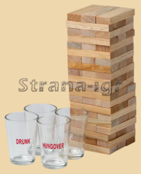 Размер 19,5 на 20,5 на 7,5 см Материал брусков - бук (на самих брусках нет никаких надписей) Материал стопок - стекло, на стопках нанесены надписи на английском языке, 2 красным цветом, 2 белым цветом Бук – представитель лиственных пород деревьев, произрастающий в умеренных широтах Европы, Азии и Северной Америки. Бук наряду с дубом относится к ценным породам дерева. Древесина бука сходна по некоторым физико-механическим свойствам с дубовой. Имеет красивую текстуру, белую с желтовато-красным оттенком окраску. Она прочная, плотная, твердая, достаточно легко гнется, режется, обрабатывается лаками и красками. Производитель Китай