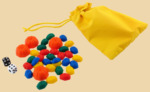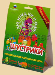 В комплекте: - шустрики (фишки игроков) - 32 шт. - тыковки (фишки финиша) - 4 шт. - игральные кости - 2 шт. - стильный мешочек - 1 шт.