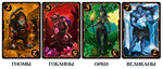 «Подземные короли» - это настольная фэнтезийная игра. Цель каждого из игроков – захватить шахты, богатые золотом и драгоценностями, а затем наполнить их пленными шахтерами. На выбор предоставлены четыре расы: великаны, орки, гоблины и гномы. Игра карточная. Каждая из карт имеет на лицевой стороне изображение отряда с определенной силой (от 0 до 9), а на оборотной – рудник с цифрами его ценности, размера и защиты. То есть каждая карта может быть как рудником, так и отрядом! Для чего это сделано?