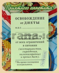 Магнит с блоком Освобождение от диет (арт. 28958)