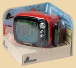 Часы имеют оригинальную форму старого доброго телевизора с пультом дистанционного управления. На экране телевизора вы можете видеть время, а также с часами можете насладиться мелодиями из еле-передач. С помощью пульта ДУ вы можете отключить экран, чтобы сделать полную темноту и насладиться сном. Корпус часов сделан из пластика желтого и черного цветов. Для удобства у будильника есть ручка для переноски. Будильник оснащен ЖК-дисплеем и кнопками для установки времени.