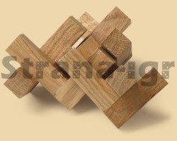 В исходном состоянии из трех одинаковых элементов собран узел, обладающий поворотной осью симметрии 3-го порядка. Задача: из элементов исходной конструкции синтезировать "более симметричное" тело. Головоломка состоит всего из трех деталей. Задача: соберите из них симметричный узел, внешний вид которого приведен на обратной стороне этикетки. Длина 11 см Материал дерево Производитель Россия