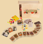Комплектация: Деревянная коробка-пенал в подарочной обложке 16 плиток поля («Бабушки» и «Батюшка») 16 карточек «Подсказки» 14 карточек «Гостинцы» 4 карточки «Кошки» 48 цветных жетонов 4 деревянные фигурки игроков 4 разноцветных кубика Удобные простые правила Вес: 1100 г. Производитель Россия