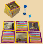 Состав игры: - коробка, она же сундучок, - 60 карточек, - 1 карточка с инструкцией и пояснениями, - песочные часы, - кубик - правила игры