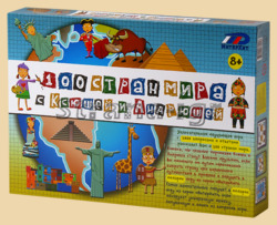 Страны и континенты, история и культура, народы и их обычаи, национальная одежда и традиции, и много-много другой полезной информации содержится в 1000 вопросах этой новой замечательной настольной игры. Игра “100 стран мира с Ксюшей и Андрюшей”- это путь в мир просвещенного человека. Пройдите своей фишкой первым от “Старта” до “Финиша” по игровой дорожке с 40 картинками 100 стран мира, правильно отвечая по очереди на вопросы карточек. Чтобы выиграть, надо иметь знания о 100 странах мира, но не менее важно обладать хорошей зрительной памятью, ведь многие ответы на вопросы расположены на соответствующих картинках игрового поля и на фасадах вопросников. Ну и конечно, не обойтись без везения! На пути к “Финишу” вас будут поджидать ловушки с крокодилами и помощь от добрых дельфинов. Эта игра содержит все лучшее из “Сундучков” и отличается своей динамичностью, большим объемом информации и оригинальным форматом, а правила игры уравнивают шансы игроков разных возрастов.