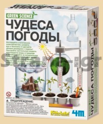 Погодная лаборатория у вас дома! Экспериментируйте со статическим электричеством, вызывающим молнии, создавайте облака на ладони, постройте модель круговорота воды, изучайте потенциал ветра, кислотные дожди и зеленую энергию.