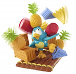 Попугай везет на плоту ценный груз – любимые фрукты и переполненные ящики самых разных товаров. Но, кажется, он немного не рассчитал размеры плота, и все грозит упасть в воду! Помогите попугаю достигнуть противоположного берега без потерь. Инструкция на русском языке в набор не входит, поэтому мы постарались как можно подробнее объяснить все правила. Правила настольной игры «Попугай на плоту» Задача игрока – загрузить свои товары на плот, не обрушив конструкцию. Если игроков двое, каждый берет по два комплекта грузов (10 штук), если трое или четверо – по одному комплекту (5 штук). Поставьте попугая на «капитанский мостик» – защелкните фигурку в центре плота. Теперь наш попугай готов отправляться в путь. Игроки выкладывают свои карты пляжа по периметру плота. На карточках расположите свои товары и приступайте к погрузке по очереди. Главное: не касайтесь рукой попугая или груза на плоту. А ставить товар можно куда угодно, даже на голову попугаю. Игроки придвигают плот к себе и следят, чтобы ничего не обрушилось. Если во время вашего хода груз упал с плота, вы проиграли, и можно заново начинать игру. Если же вы смогли поставить все свои товары на плот, не уронив их, еще до того, как товары закончились у соперников, поздравляем! Вы выиграли. Что развивает настольная игра «Попугай на плоту» Помогая попугаю доставить груз без потерь, дети развивают ловкость и сообразительность, координацию движений и пространственное восприятие. Эта игра – центр веселых компаний! Ребенок улучшает навыки общения, учится адекватно принимать победу и поражение. В комплекте: плот попугай 20 грузов (4 прямоугольных ящика, 4 треугольных ящика, 4 бочки, 4 связки бананов, 4 ананаса) 4 карточки пляжа Возраст 5+ Количество игроков 2-4 Размер упаковки 27 на 27 см Производитель Россия