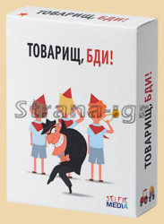 Перед вами новая карточная игра “Товарищ, бди!” от Selfie Media. Цель игры - выявить среди игроков вражеского агента. Добиться этого можно, задавая друг другу различные вопросы. Игра может похвастаться отличным дизайном. Каждая карточка украшена стильными и запоминающимися иллюстрациями. Благодаря простым и понятным правилам, красочному оформлению и доступной цене игра “Товарищ, бди!” станет отличным приобретением для любого поклонника настольных игр. Игра компактна, поэтому ее удобно использовать в дороге.