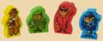 В комплекте: двусторонняя карточка «парк» (1 шт.); квадратные карточки (игровое поле) (23 шт.); карты с заданиями (23 шт.); карты агентов (4 набора по три карты); деревянные фигурки секретных агентов (4 шт.); правила игры.