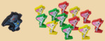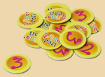 Как играть? Подготовка к игре. Собрать стрелку. Собрать качели. Жетоны перевернуть цифрами вниз и хорошо перемешать. Установить очередность хода. Участникам игры взять по 4 фигуры мышат и кусочек сыра одного цвета. В игру можно играть двумя способами. Первый способ. Первому по очереди игроку установить фигуру кота и одну свою фигуру мышонка на качели. Далее следующий по очереди участник игры вращает стрелку и устанавливает своего мышонка на качели, выполняя условия символа, на который указала стрелка. Во время игры все участники при удачной установке своей фигурки говорят «Алле-гоп!», после чего ход переходит следующему игроку. А если пирамида развалилась, игрок говорит «Алле шлеп!», и кон заканчивается. Второй способ. Первому по очереди игроку установить фигуру кота и одну свою фигуру мышонка на качели. Кусочек сыра с отверстиями также участвует в построении пирамиды. Затем следующий по очереди участник игры вращает стрелку и устанавливает своего мышонка на качели, выполняя условия символа, на который указала стрелка. За каждую установленную на качели фигуру или сырный кусок игрок берет из банка 2 жетона. Игрок, который поставил последнюю фигуру на качели, забирает из банка оставшиеся жетоны. Участники игры переворачивают свои жетоны и подсчетом очком определяют победителя.