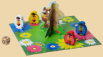 Как играть? 2 игры в одной коробке. Игра на лицевой стороне планшета. В центр игрового поля устанавливается декорация «Улей». Фишки-пчелки расставляются на маленьких цветках соответствующего цвета. Все жетоны переворачиваются капельками вниз. Это игровой банк. Участники игры передвигают свою фишку по игровому полю («летают с цветка на цветок»). В случае если фишка игрока остановилась на поле-цветке своего цвета, участник берет из банка жетоны — один, если цветок маленький, и два жетона, если цветок большой. Игрок, набравший самое большое количество баллов, становится победителем. Игра на обратной стороне планшета. Дополнительная игра на внимание. Пчелки хорошо потрудились и несут полные корзинки с пыльцой. Помогите пчелкам найти свой улей.