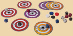 В комплекте: - 12 кубиков - 9 дисков-мишеней - 4 деревянные шайбы - правила игры
