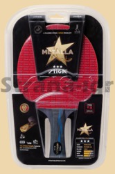 Ракетка Stiga Metalla– качественная готовая ракетка для игроков, уверенно владеющих основными навыками игры и выбравших атакующий стиль или комбинационный стиль. Основание ракетки сделано из облегченного семислойного шпона Мовенге , Абачи и Бальзы (центральный слой). Это ценные породы древесины, обладающие уникальными свойствами. Мовенге (лимонник) имеет необходимые качества для изготовления оснований с пружинистым ударом. Древесина абачи мягкая, прочная, формоустойчивая. Бальза - редкая порода древесины, чрезвычайно мягкая и легкая в сухом виде. Сочетания трех пород придает ракетке особые свойства. Основание обработано уникальным напылением Crystal Tech , увеличивающим скорость отскока мяча. Ручка ракетки удобной формы, подходящей и для детской, и для взрослой руки. На основание приклеены гладкие ультралегкие накладки Future c губкой толщиной 2,0 мм, сделанной по системе ACS (воздушно-пузырьковая система). Губка с тысячами пор, наполненными воздухом, придает инвентарю дополнительный контроль над скоростью и силой вращения при игре. Общие характеристики ракетки по сто балльной шкале: скорость – 85, вращение 70, контроль 63. Этот инвентарь предназначен для игроков атакующего стиля, умеющих наносить быстрые удары со сменой вращения, и ценящих хорошее чувство мяча. Характеристики ракетки позволяют активно применять атакующие элементы, использовать силу вращения, при этом эффективно играть на приеме. Такой инвентарь может стать как постоянной ракеткой для тренировок и участия в соревнованиях, так и переходным звеном на пути спортивного совершенствования. Система WRB улучшает отскок, придает дополнительную силу удару и позволяет лучше чувствовать мяч. Уровень игрока: Любители Скорость: 85 Вращение: 70 Контроль: 63 Толщина губки: 2,0 мм(future) Накладка: Future Тип ручки: Коническая (CONC) Тип основания: ALL+ Количество слоев: 7 Вес ракетки: 140 грамм Вес с упаковкой 214 гр.