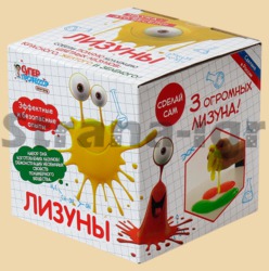Набор содержит все необходимое для изготовления огромного лизуна одного цвета. В красочной инструкции подробно описан процесс изготовления и механизм образования этой необычной игрушки. Детская игрушка «Лизун» появилась в 1976 году. Она представляет собои? вязкую желеобразную массу, которая необычно ведет себя в руках, наглядно демонстрируя силу связей между молекулами: чем связей больше, тем вещество тверже!