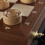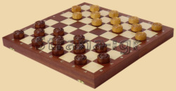 Размер доски в сложенном виде 20 на 40 см, высота 5,5 см Размер доски в разложенном виде 40 на 40 см Размер клетки шашечного поля 4,5 см Каркас доски выполнен из массива африканского красного дерева - сапеле, клетки шашечного поля из сапеле и клён Диаметр фишек для игры в шашки 3,5 см, высота фишек 1,5 см Материал фишек: светлые самшит, темные сапеле В подарок к шашкам поставляется фирменная подарочная коробка и сертификат с информацией об изделии Коробка снаружи обтянута натуральным льном, что придаёт подарку очень презентабельный внешний вид У многих видов клёна текстура древесины красивая и очень разнообразная. Цвет - желтоватый или розоватый с красноватым или буроватым оттенком. Сама древесина клёна достаточно плотная, твердая, тяжелая, обладает высокой прочностью, часто используется при изготовлении различных деревянных изделий. Сапели или так называемое красное дерево – широколиственное дерево, произрастающее в тропических лесах Центральной и Южной Америки (от Южной Мексики до Бразилии). Древесина махагона прочная, твердая. Она очень долговечна. Почти не коробится и не трескается. Самшит – вечнозеленые медленнорастущие деревья, достигающие высоты 15 м. Теплолюбив, произрастает на юге Европы, в Экваториальной Африке, в тропиках и субтропиках Центральной Америки. Древесина самшита однородная, тяжелая и твердая, отличается высокой плотностью. По прочности древесины, почти равной прочности кости, самшит превосходит граб. Прекрасно полируется и тонируется. Вес шашек - 2,3 кг Производитель Россия (Мастерская Кадуна)