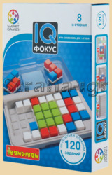 Детали похожи на элементы игры Тетрис, каждая своей формы. Игровое поле с крышкой позволяет убрать все детали внутрь, а через специальное окошко в центре крышки видны как раз те самые 9 центральных квадратиков, которые и нужно собрать - удобно для проверки, если играет маленький ребенок. Благодаря крышке и компактному размеру, IQ-Фокус удобно брать с собой в дорогу! На решение всех 120 заданий уйдет не 1 час, а значить игра пригодится и дома, и в отпуске. В процессе игры необходимо разместить все элементы, не забывая построить в центре квадрат из нужных цветов. Часто возникают моменты, когда казалось бы все уже собрано, остается 1-2 детали, но они никак не подходят на оставшиеся пустые места на поле. И вот тогда начинается самое интересное - поиск решения, так чтобы и все детали влезли на поле, и чтобы центральный квадрат-задание был собран! В комплекте: игровое поле с закрывающейся крышкой, 10 разноцветных деталей разной формы, книга с заданиями и ответами.