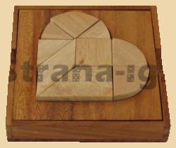Головоломка включает несколько задач разного уровня сложности (2, 3, 4 уровней сложности из 7) Это старинная китайская игра-головоломка. Сущность игры заключается в складывании из 7 фигур, полученных разрезанием квадрата определенным образом, различных фигурок. Попытайтесь разместить 7 геометрических фигур в квадратную коробочку. Материал тропическое дерево Производитель Индонезия