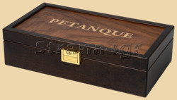 Кейс для петанка (бочче) изготовлен из массива бука и предназначен для хранения 8 шаров Размер кейса 36,5 на 20 см, высота 9,5 см Надпись сверху кейса выполнена в технике маркетри из таких пород дерева как орех и ясень Название техники маркетри произошло от французского слова marquer – расчерчивать, размечать. Маркетри представляет собой один из видов инкрустации по дереву, при котором мозаичный узор выполняется из тонких пластин разных пород дерева – шпона. Бук – представитель лиственных пород деревьев, произрастающий в умеренных широтах Европы, Азии и Северной Америки. Бук наряду с дубом относится к ценным породам дерева. Древесина бука сходна по некоторым физико-механическим свойствам с дубовой. Имеет красивую текстуру, белую с желтовато-красным оттенком окраску. Она прочная, плотная, твердая, достаточно легко гнется, режется, обрабатывается лаками и красками. Ореховая древесина тяжелая и твердая, хорошо отделывается, позволяет осуществлять достаточно тонкую резьбу практически во всех направлениях и редко скалывается. Обладает богатой тональной гаммой, а также многообразием текстуры. Окраска варьирует от светлой коричневато-серой до почти черной. Древесина ясеня крепкая, твердая и тяжелая. Она отличается малой водонепроницаемостью, умеренно усыхает, хорошо обрабатывается и полируется. Текстура древесины является выразительной и красивой. Родина ясеня обыкновенного — Европа и Закавказье. В греческой мифологии ясень воплощает силу, его связывают с Зевсом Внутри кейса для петанка (бочче) сделаны специальные ячейки для хранения шаров, сверху и снизу ларец выстлан специальной бархатной тканью, что не позволяет шарам создавать шум во время транспортировки и предохраняет их от ударов Вес кейса - 2 кг Производитель Россия