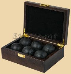Набор для игры в петанк (бочче) на 6 шаров в буковом кейсе Состав набора: - 6 металлических шаров для игры в петанк (бочче), цвет чёрный - буковый кейс - веревочка для измерения расстояний - деревянный или пластиковый шарик (кошонет) Рулетка в комплект не входит! Размер букового кейса 20 на 28 см, высота 9,5 см Вес шара 715 гр, диаметр шара 67 мм Надпись сверху кейса выполнена в технике маркетри из таких пород дерева как орех и ясень Название техники маркетри произошло от французского слова marquer – расчерчивать, размечать. Маркетри представляет собой один из видов инкрустации по дереву, при котором мозаичный узор выполняется из тонких пластин разных пород дерева – шпона. Бук – представитель лиственных пород деревьев, произрастающий в умеренных широтах Европы, Азии и Северной Америки. Бук наряду с дубом относится к ценным породам дерева. Древесина бука сходна по некоторым физико-механическим свойствам с дубовой. Имеет красивую текстуру, белую с желтовато-красным оттенком окраску. Она прочная, плотная, твердая, достаточно легко гнется, режется, обрабатывается лаками и красками. Вес набора для игры в петанк (бочче) - 5 кг Производитель: шары - Китай, кейс - Россия
