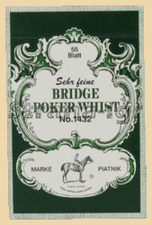 Карты "Бридж, покер-вист" подходят для профессиональной игры в покер, бридж и другие карточные игры, так как имеют весьма гладкую и ровную поверхность, стандартный размер карт. Европейское качество, художественные лица и рубашка Индекс: стандартный, лица изображены в художественном стиле Количество карт: 55 листов Цвет рубашки: зелёная Размер упаковки: 9 на 6 на 1,8 см Размер карт: длина 88,9 мм, ширина 57,15 мм ("бридж" размер) Вес: 95 гр. Производитель: Австрия (Piatnik)