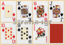 Колода состоит из 55 карт Размер карт - длина 88,9 мм, ширина 63,5 мм ("покер" размер) Индекс карт увеличенный (джамбо индекс) Стиль лиц классический Карты с пластиковым покрытием Красная рубашка Производитель Австрия (Piatnik)