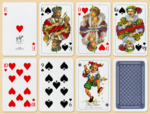 Индекс: стандартный, лица изображены в художественном стиле Количество карт: 55 листов Цвет рубашки: синяя Размер упаковки: 9 на 6 на 1,8 см Размер карт: длина 88,9 мм, ширина 57,15 мм ("бридж" размер) Вес: 100 гр. Производитель: Австрия (Piatnik)