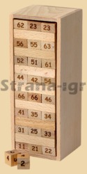 Высота 15,5 см Размер бруска 4,5 на 1,5 на 1 см Размер основания (в собранном виде) 5,5 на 4,5 см В комплекте 48 брусков Материал бук Количество игроков 2-4 Производитель Россия