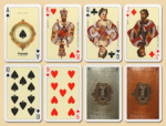 В красивой коробке лежат две колоды игральных карт Династия Романовых. Серая и коричневая рубашка. В каждой колоде 55 листов. На каждой карте изображен определенный персонаж из великой династии Романовых с обозначением годов жизни. Петр I, Екатерина Великая, Николай II и многие другие исторические личности представлены в этой колоде. Коробка для хранения карт изготовлена из плотного картона с приятным тиснением. Сами карты с пластиковым покрытием. Отличный подарок себе и близким. Производство Piatnik Австрия. В колоде 3 джокера.